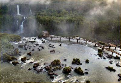 Посетив водопады Игуасу, Вы насладитесь незабываемыми и потрясающими воображение видами, понаблюдаете за забавными зверьками куати, которые обитают около водопадов. Вы также сможете заказать полет над водопадами на вертолете, откуда открывается наилучший вид, когда внизу развертывается захватывающая дух путешественника панорама. Но наиболее острые ощущения водопад дарит, если с ним знакомиться с подвесного моста, протянутого над рекой. При полной воде этот подвесной мост периодически смывает, но именно с такого близкого расстояния и можно в полной мере ощутить немыслимую мощь воды, срывающейся в бездну.