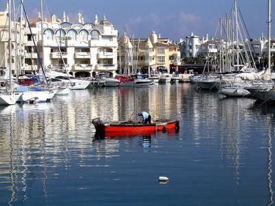 Веселый дух морского курорта передает спортивный порт Puerto Marina, изумляющая построенными на платформах домами, барами, ресторанами, магазинами и белоснежными яхтами на побережье.