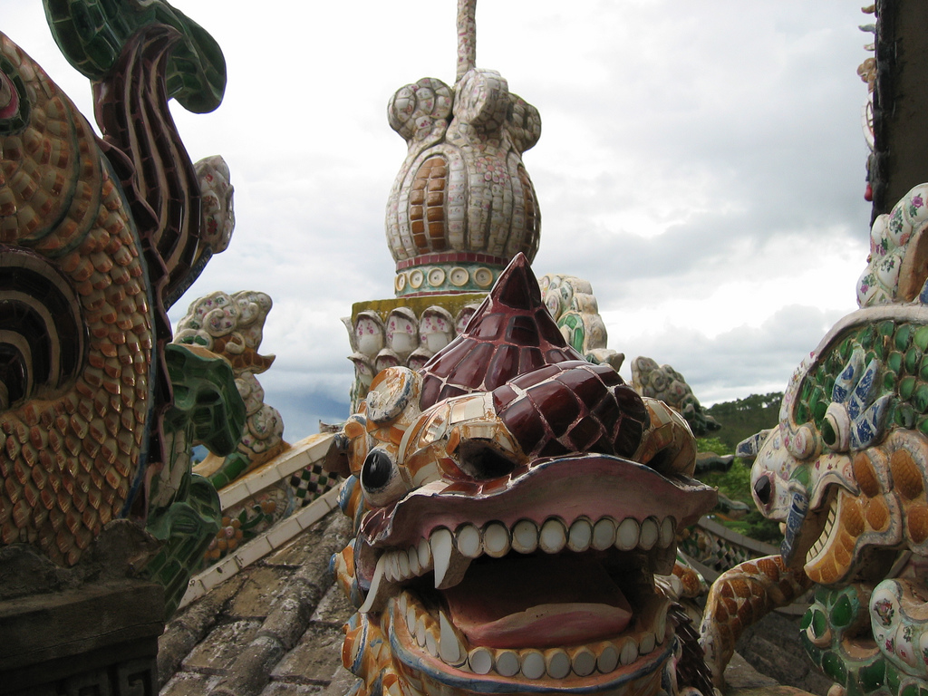 Гостиница Ханг Нга – весьма оригинальное сооружение, архитектурный стиль которого едва ли можно определить. Здесь можно набрести на бетонного жирафа, внутри которого уютно расположилась чайная комната, гигантские паутины из проводов, бетонные деревья. Все это весьма необычно для Вьетнама. Местные жители называют гостиницу »сумасшедшим домом», однако на самом деле – это пансион, кафе и художественная галерея одновременно.