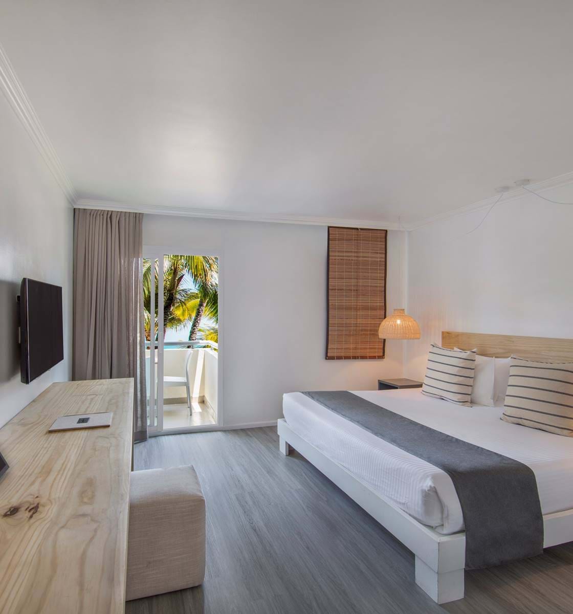 Рассчитаны для максимум 2 взрослых. - Superior Sea-Facing Room — расположенные на первом, втором или третьем этажах южного крыла рядом с пляжем светлые улучшенные номера площадью 30 кв.м, с потрясающим видом на океан, состоящие из спальни с одной большой двуспальной кроватью King-size, ванной комнаты, частного меблированного балкона или террасы.