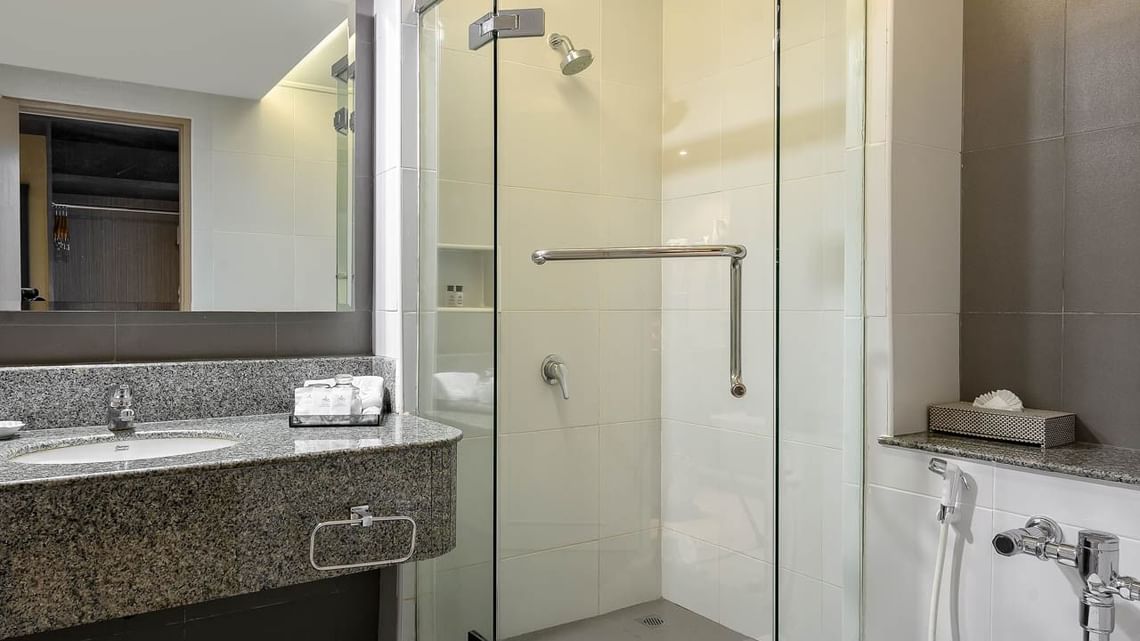 Во всех номерах имеется: индивидуально регулируемый кондиционер, ванная комната, фен, халаты и тапочки, Smart-телевизор 50″, прямой телефон, сейф, мини-бар, принадлежности для приготовления чая и кофе, бесплатный доступ в высокоскоростной интернет Wi-Fi.