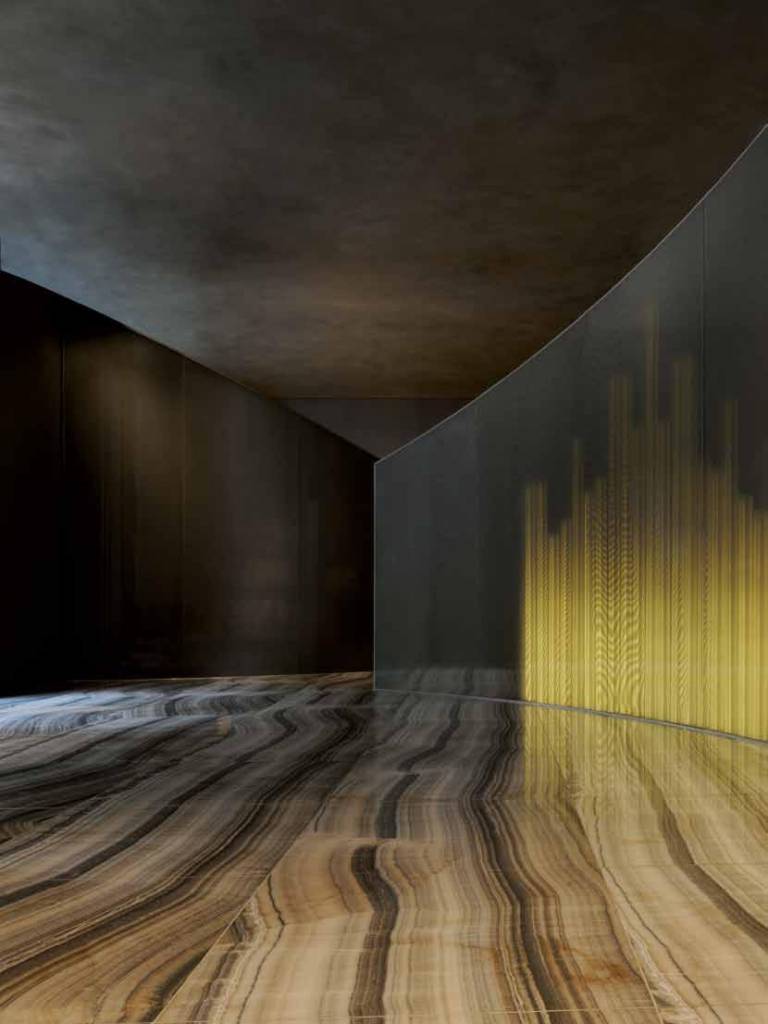 При этом в отеле – отдельный вход, что подчеркивает индивидуальность и неповторимость проекта. С первых шагов в отеле гости будут приятно удивлены просторной лаунж-зоной вместо стандартной рецепции. Вся инфраструктура отеля сосредоточена на 7 и 8 этажах, откуда открывается великолепная панорама на Миланский кафедральный собор и современные небоскребы. Личный lifestyle-менеджер провожает гостей на седьмой этаж, и первое, что впечатляет – панорамный вид на собор Дуомо. На этом этаже находится рецепция, Armani/Ristorante, Armani/Lounge и Armani/Bamboo Bar. Интересной деталью является то, что с высоты птичьего полета здание отеля имеет форму буквы «A» — это, по словам дизайнера, случайное, но очень счастливое совпадение.