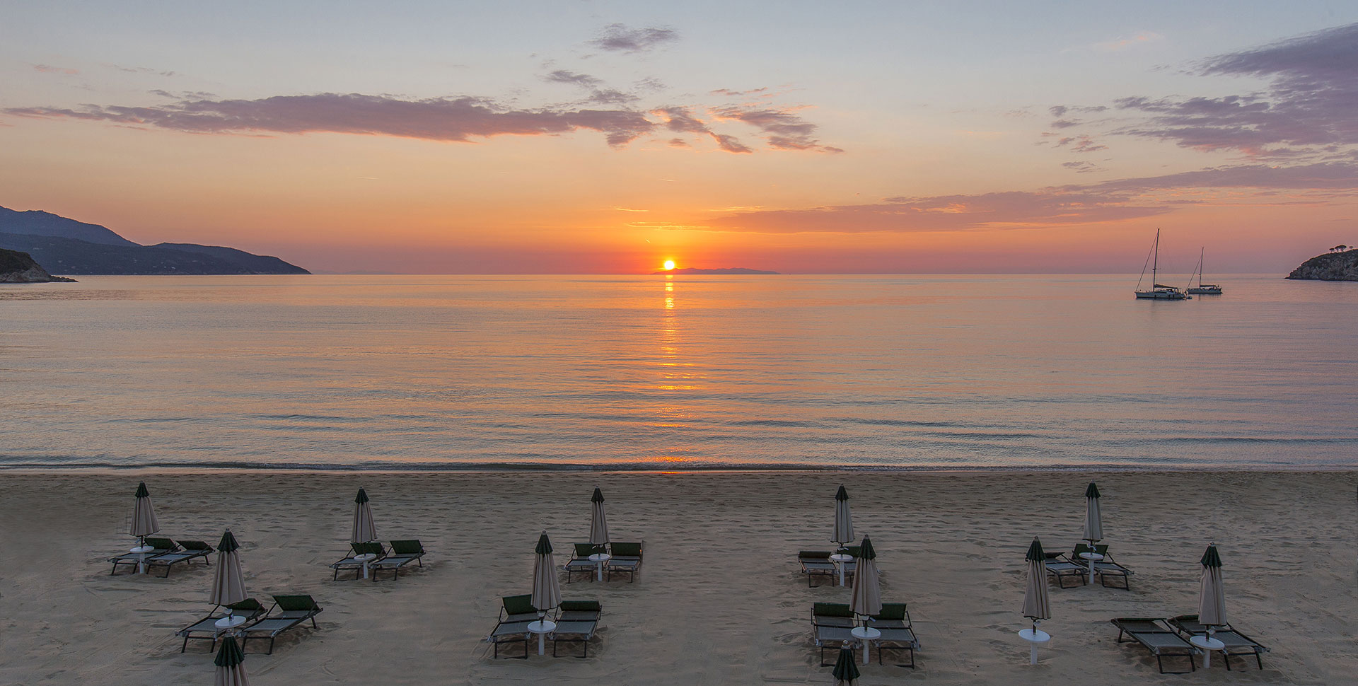 - Sea View Rooms — номера площадью 18-20 кв.м, с видом на море, состоящие из спальни, уютно обставленной гостиной зоны, оснащенной эксклюзивным комплектом туалетных принадлежностей на натуральной основе от Acqua dell’Elba ванной комнаты, отдельного балкона со столом и стульями.