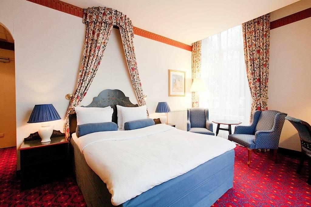 Для размещения отель предлагает 78 оформленных в классическом голландском или английском стиле номеров и люксов, с отделанными синей плиткой ванными комнатам. Номера обставлены кроватями c матрацами NASA и имеют удобную рабочую зону.
