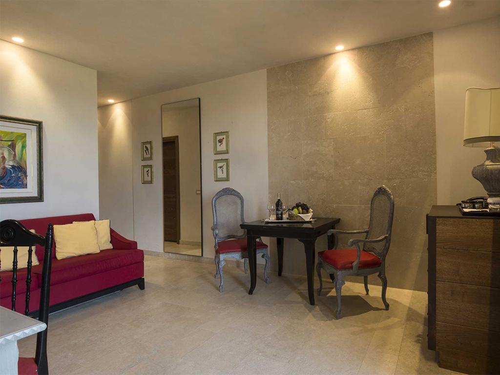 - Balcony Junior Suite — обставленные старинной мебелью элегантные и изысканные полулюксы площадью от 30 до 50 кв.м, с терракотовыми полами и сводчатыми или балочными потолками, с впечатляющим видом на виноградники Валь д’Орча и Brunello di Montalcino, состоящие из спальни, большой отдельной гостиной комнаты, отделанной мрамором ванной комнаты с ванной и душем и одной или двумя раковинами (в некоторых есть гидромассажная ванна), частного меблированного балкона, где вы можете наслаждаться незабываемыми моментами покоя и отдыха. Рассчитаны для 3 гостей.