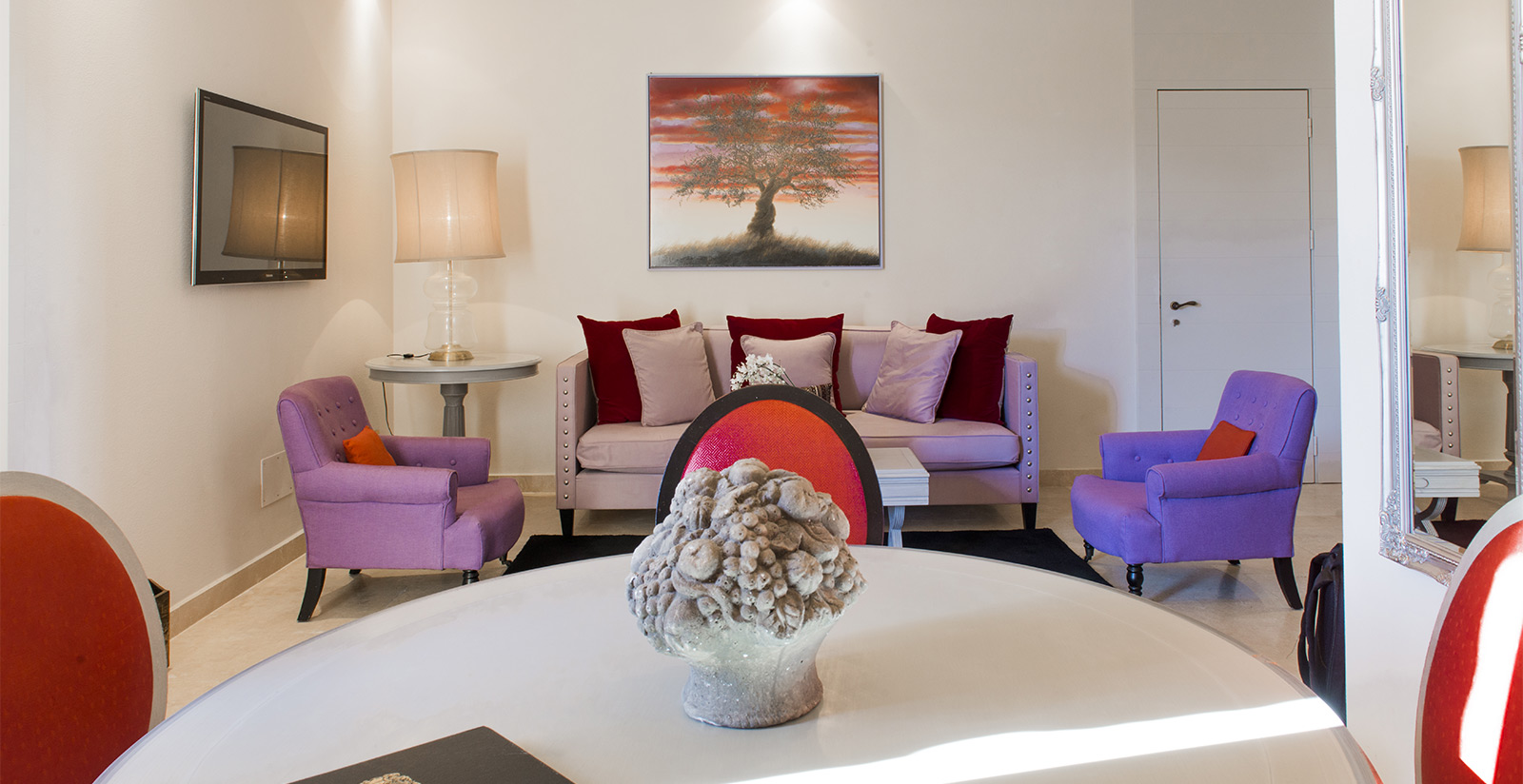- UNESCO View Terrace Royal Suite — элегантный и просторный королевский люкс площадью 80 кв.м, состоящий из просторной спальни с прекрасным видом на виноградники Val D’Orcia с кроватью king-size с матрасом Simmons; отделенной от спальни большим диваном гостиной с креслами, столом и стульями, выдержанной в мягких цветах и выполненной в линейном и современном стиле, с теплыми ссылками на тосканские традиции и французским окном с видом на Val D’Orcia; комнаты для расслабляющих процедур с отдельным входом с профессиональным массажным столом; ванной комнаты с просторной гардеробной, полностью в травертине и оборудованной большой ванной, которую можно наполнить той же вулканической водой, которая питает ванны SPA, отдельным душем и двойной раковиной; частного дворика и сада, оборудованного столом, стульями, шезлонгами и большим зонтиком, где можно любоваться прекрасным пейзажем виноградников и Всемирного наследия и горы Амиата, в частности незабываемыми закатами и виноградниками Brunello di Montalcino. В люксе есть возможность организации эксклюзивных ужинов. Рассчитан для максимум 4 гостей.