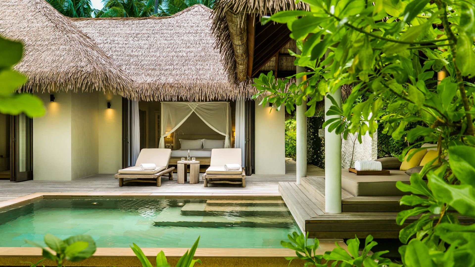 Эти виллы являются самыми большими апартаментами с одной спальней и предназначены для семей, которые ценят уединение и роскошь дополнительного пространства. Жизнь на пляжной вилле — это уникальное сочетание уединения и открытости: французские двери соединяют спальню с бассейном, а ванная комната сливается с внешним миром.