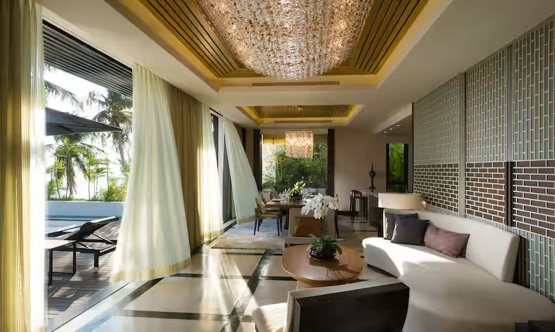 Рассчитаны для максимум 3 гостей. Доступна раскладная кровать. - 2-Bedroom Family Ocean View Pool Villa — расположенные на возвышенности (пятый уровень курорта) двухэтажные семейные виллы площадью 297 кв.м, гармонично сочетающие в себе роскошь и комфорт.