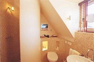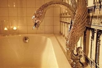 - Wijnkelder suite - номер с поистине уникальной обстановкой, который состоит из спальни с установленной над старинным винным погребом кроватью и покрытой сусальным золотом стеной, гостиной зоны - обставленной итальянской мебелью в стиле Colombo. Ванная комната выложена плитками из красного мрамора, стены - от Piero Fornasetti Bardelli, а зеркала и посеребренные краны в форме лебедя - от Philippe Starck. Над элегантным умывальником установлен телевизор с плоским экраном.