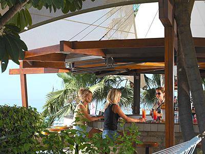 Beach Bar, расположенный в зеленой зоне на выходе к пляжу. предлагает сендвичи, различные салаты и напитки.