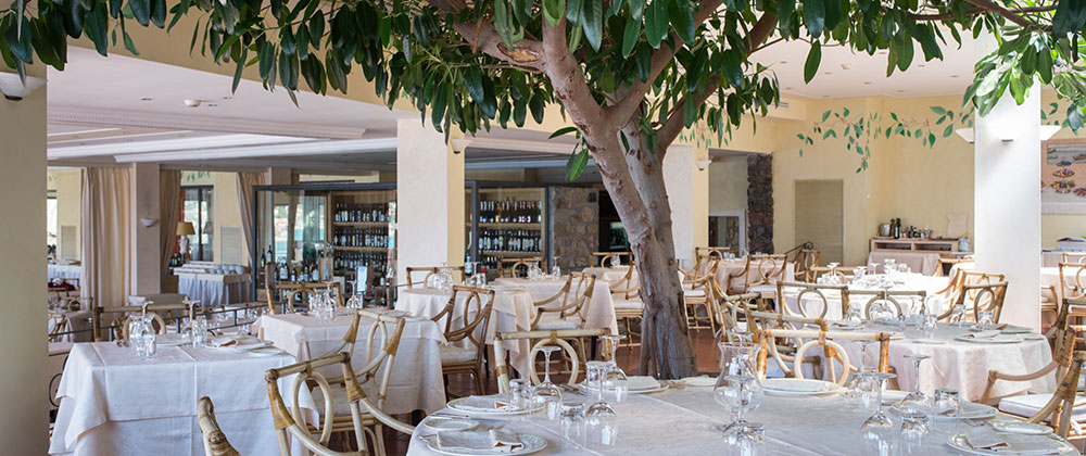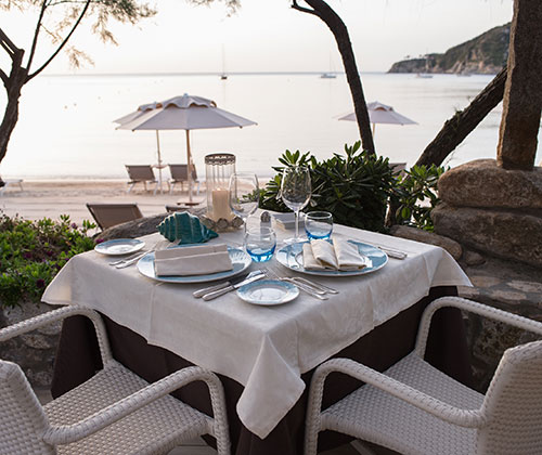 На обед предлагаются самые лучшие средиземноморские рецепты в интерпретации шеф-поваров, которые сочетают традиции и креативность. Большая часть ингредиентов, поступающих на кухню, таких как помидоры Сан Мартино, ароматные травы и часть фруктов, выращены на острове Эльба, или на расположенном поблизости острове Пианоза. Также предлагаются анчоусы, омары, лангусты и рыба, пойманная на удочку, мясо и сыры.