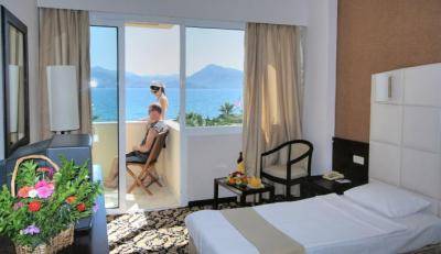 Holiday Republic Marmaris Resort — самый верный выбор, если Вы хотите провести незабываемый отдых на побережье. Состоит отель из 3 трехэтажных корпусов, занимая общую площадь 10 000 кв м., в окружении лесов и моря. Сосновые и эвкалиптовые деревья делают воздух особенно приятным и свежим, а уединенная местность, тишина и покой создают благоприятные условия для проведения отдыха всей семьей.