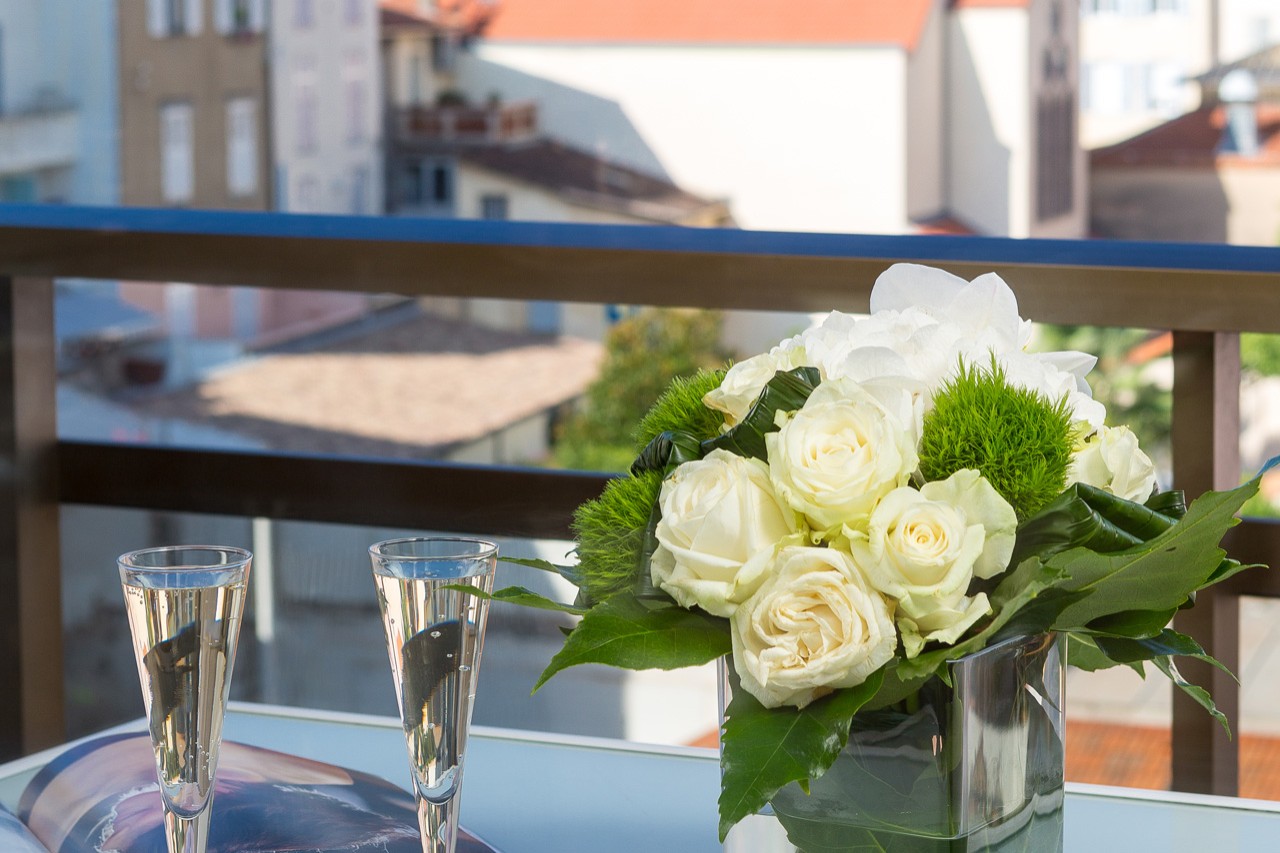 - Junior Suite Prestige Terrace — полулюксы с потрясающим видом на старый город Канны и Le Suquet, состоящие из спальни с большой кроватью King-size или двумя односпальными кроватями Twin, просторной гостиной, рабочей зоны, гардеробной, ванной комнаты с эко-ванной и отдельной матовой душевой кабиной, террасы. Дополнительно в номерах есть кофемашина Nespresso, принтер.