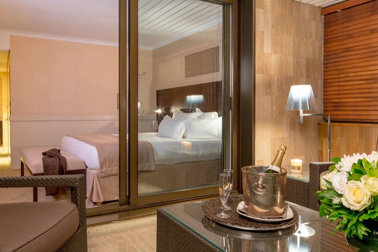 - Prestige Sea Terrace Suite — расположенный на верхнем этаже отеля роскошный люкс площадью 50 кв.м, с видом на Средиземное море, состоящий из спальни с одной двуспальной кроватью King-size или двумя односпальными кроватями Twin, большой гостиной, которая может быть отделена от спальни, когда это необходимо, гардеробной, ультра-стильной ванной комнаты с эко-ванной и отдельной душевой кабиной в итальянском стиле, террасы. Дополнительно в люксе есть кофемашина Nespresso, принтер. Гостям люкса уготовано VIP-приветствие.