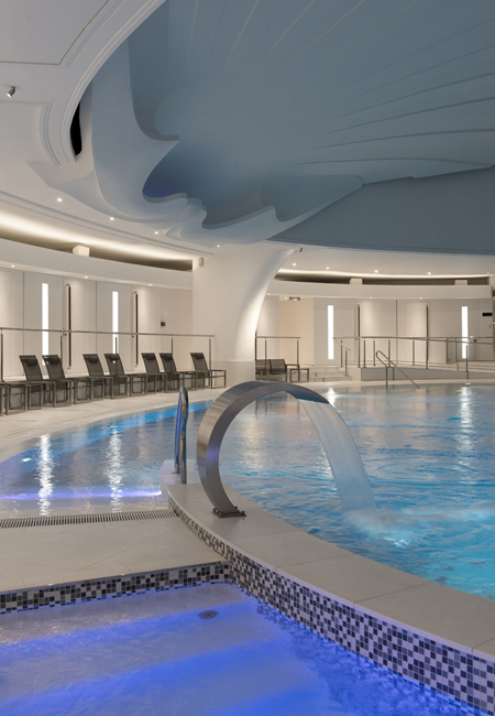 Бассейн обустроен белыми подступами, которые придают великолепие излучаемому Средиземным морем освещению и сменяющимся каждый час оттенкам. Его подводные струи с расширенными насадками производят полный массаж тела.
