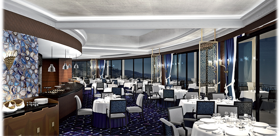 Новое лицо ресторана, созданное дизайнерами Патриком Жуэном (Patrick Jouin) и Санжитом Манку (Sanjit Manku), отражает сладость жизни на Ривьере.