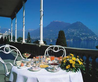 - Suite - люксы, которые состоят из совмещенной гостиной и большой спальни или из двух больших спальных комнат и гостиной. В некоторых люксах есть замечательная стеклянная люстра Murano и фрески 19-ого столетия. На потолке изображены альпийские швейцарские пейзажи. Большая ванная комната с турецкой баней отделана итальянским мрамором. Из террасы президентского люкса открывается великолепный вид на город, озеро и горы.