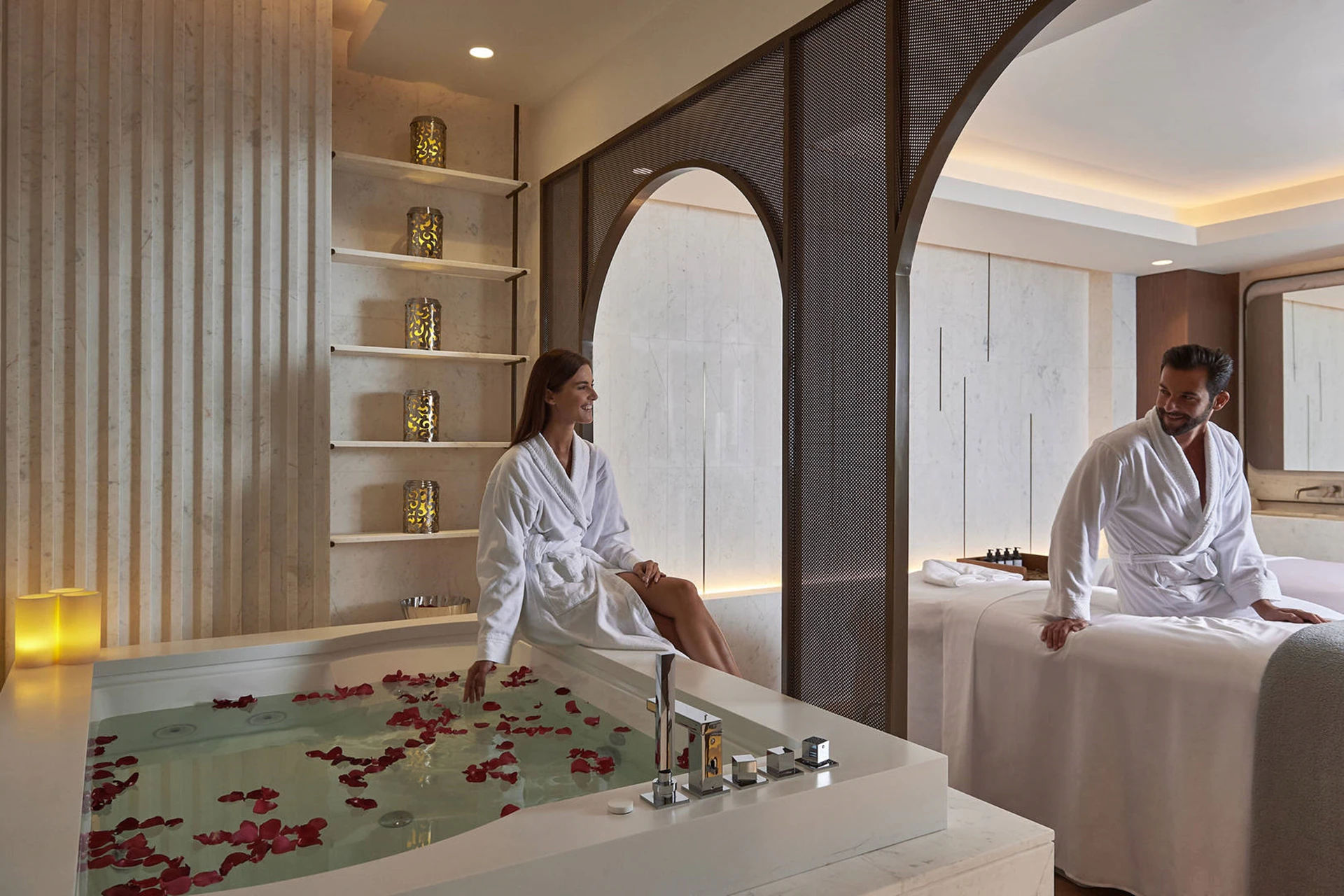 Каждый дюйм его спокойного дизайна был вдохновлен ощущением спокойствия волн, омывающих морской берег с белым песком, образующих изящные линии и успокаивающие пространства, которые увлекут вас в вашу личную гавань. Погрузитесь в состояние блаженства в хаммаме и после процедуры расслабьтесь на потрясающей террасе спа-центра с видом на океан.