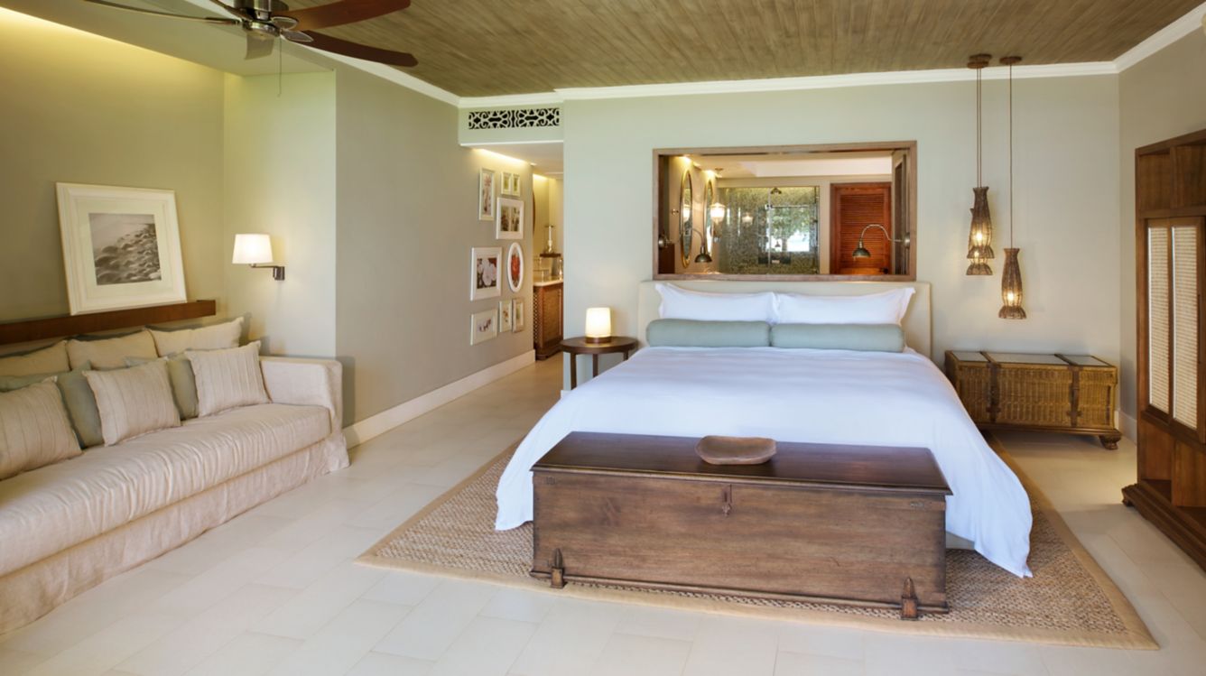 Люкс занимает самую большую площадь в портфолио курорта. С прямым доступом к пляжу, есть естественная связь с островом, которая передается во всем интерьере, где деревянная мебель и нежная цветовая палитра обеспечивают спокойный отдых.