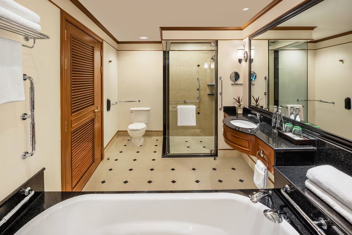 Во всех номерах имеется: кондиционер, отделанная мрамором и оснащенная комплектом высококачественных туалетных принадлежностей ванная комната, фен, халаты и тапочки, зеркало для макияжа с подсветкой, кабельное и спутниковое телевидение, включая канал CNN, 2 телефона с громкой связью и голосовой почтой, радио, будильник (Sony), сейф (платно), мини-бар, мини-холодильник, набор для приготовления чая и кофе, бесплатная питьевая вода в бутылках, мгновенная горячая вода, мобильные ключи, звуконепроницаемые окна, роскошные постельные принадлежности, гладильная доска и утюг, бесплатный доступ в проводной и беспроводной интернет WiFi.