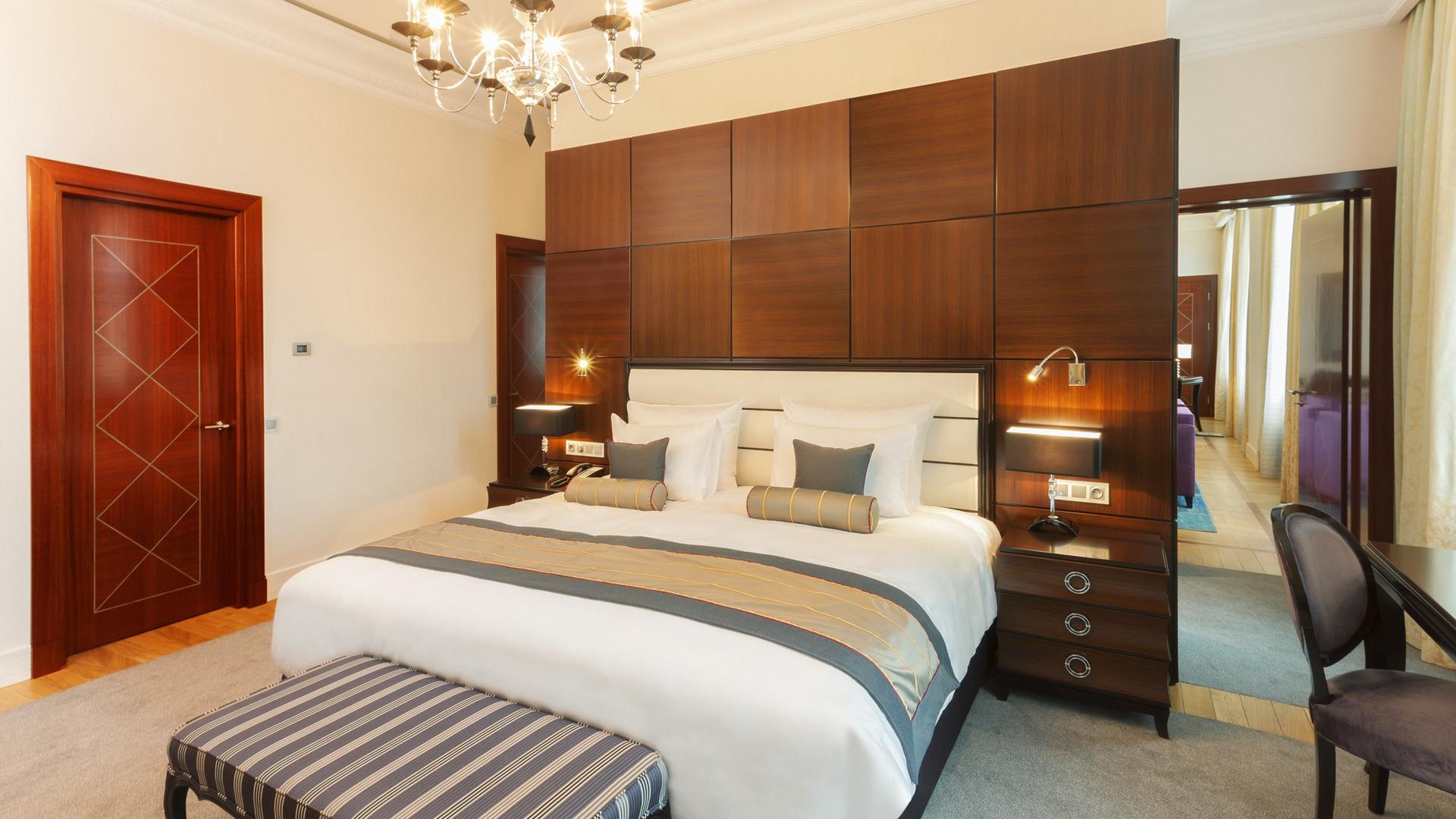 - Deluxe Rooms - номера в классическом стиле, площадью 31-45 кв.м, с панорамным видом на город и Кафедральную площадь, отличающиеся особой атмосферой роскоши. Номера с высокими потолками состоят из спальни с одной кроватью King или двумя кроватями Twin, комфортной гостиной зоны, большой ванной комнаты с ванной и душевой кабиной. Наслаждайтесь каждой минутой в окружении идиллического пейзажа на одном из множества очаровательных террас и балкончиков. Рассчитаны для максимум 2 взрослых.