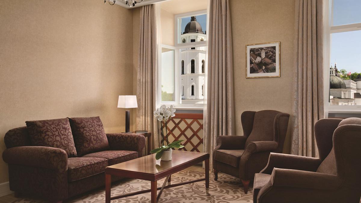 - Deluxe Cupola Suite - роскошная двухэтажная резиденция, уникальные дуплекс апартаменты в классическом стиле, площадью 45 кв.м, с панорамным видом на город, Кафедральную площадь и замок Великого Князя Гедиминаса, состоящие из спальни с одной большой кроватью King, отдельной просторной гостиной комнаты, 2 ванных комнат с ванной и отдельной душевой кабиной. Дополнительно в номере есть док-станция для iPod; предусмотрена одна дополнительная кровать. Рассчитаны для максимум 2 взрослых и 2 детей.