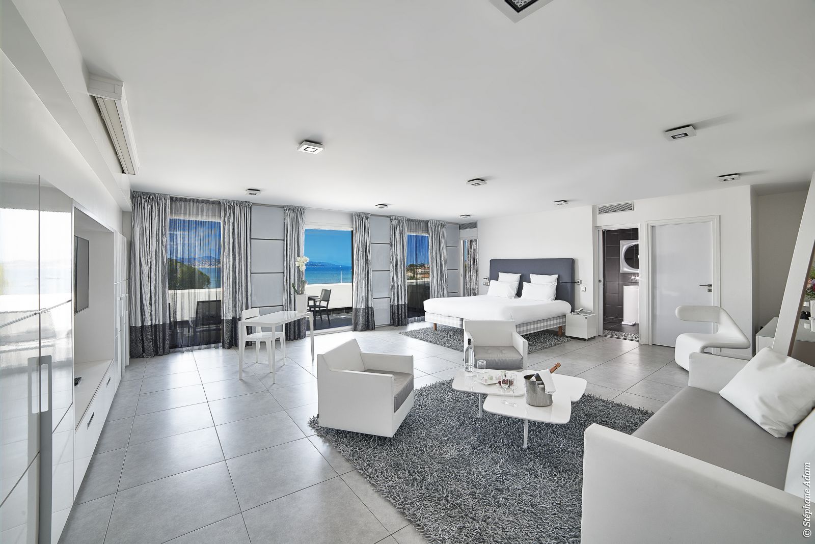 - Suite Kube — расположенный на последнем этаже отеля люкс площадью 94 кв.м, с панорамным видом на море, состоящий из спальни, просторной, уютно обставленной гостиной зоны, ванной комнаты, террасы площадью 29 кв.м с гидромассажной ванной на открытом воздухе. В люксе дополнительно есть CD/DVD-плеер, док-станция для iPod, игровая приставка, подключение к интернету ADSL и Wi-Fi, сейф.