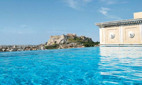 - Royal Penthouse Suite - королевский люкс-пентхаус площадью 350 кв.м, занимающий весь 9-й этаж, переопределяет понятие роскоши. С настенными росписями от Констанина Каканиаса (Konstantin Kakanias) этот люкс предлагает идеальное место для проведения приемов с количеством приглашенных до 80 персон. Люкс с частным лифтом и отдельным входом для гостей и обслуживающего персонала располагает собственной террасой, откуда открывается непревзойденный вид на город, Парфенон и стадион Panathenaic. Джакузи и частный бассейн люкса - с мозаичной плиткой.
