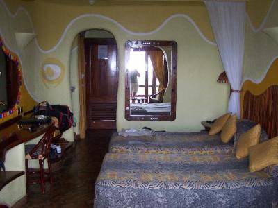 Комфортабельные домики с остроконечными крышами в своей архитектуре повторяют черты традиционного жилища масаи. Во внутреннем оформлении акцент сделан на яркие, насыщенные цвета, напоминающие о саванне. Африканские предметы интерьера и оригинальная роспись стен создают атмосферу экзотики.