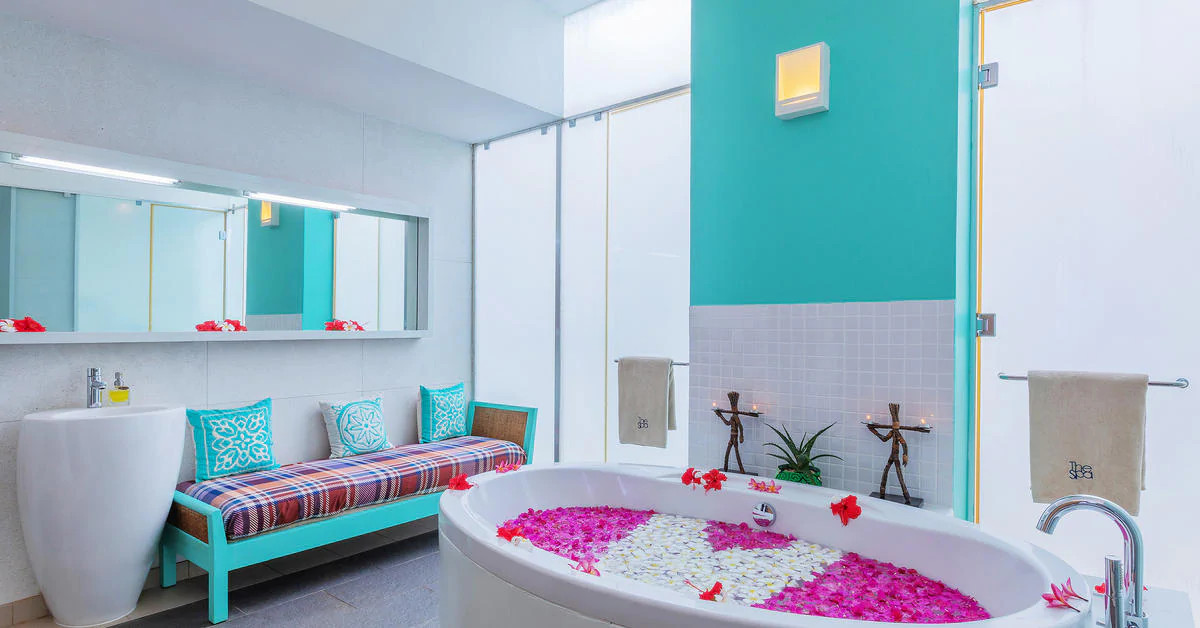 Номера оснащены большими удобными ванными комнатами, тропическим душем на открытом воздухе с видом на небо (кроме романтического павильона (Romantic Pavilion), бунгало с видом на океан (Ocean View Bungalow) и пляжного павильона (Beach Pavilion)) и отдельной террасой или балконом, в основном с боковым видом на Индийский океан.