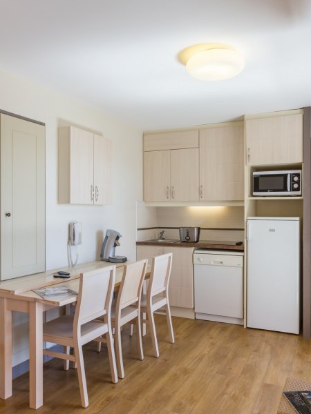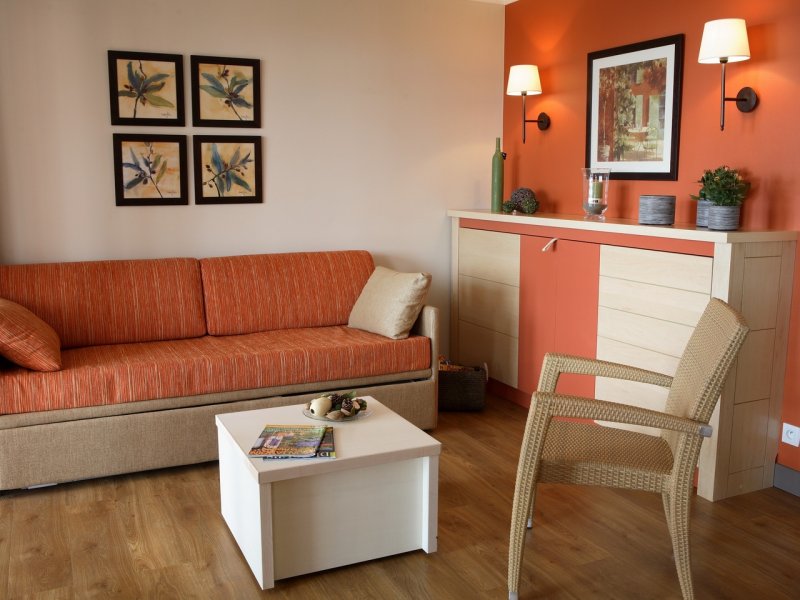 - Standard Apartment — 1/2-bedroom apartment for 6/7 people — апартаменты площадью 37-42 кв.м с 1/2 спальней для 6-7 человек. 1 спальня с одной двуспальной кроватью; 1 спальный альков с двумя двухъярусными кроватями; 1 гостиная с тахтой с выдвижной кроватью (рекомендуется для детей), раскладной кроватью; полностью оборудованная кухня открытого плана; 1 ванная комната с ванной или душевой кабиной; 1 туалет.