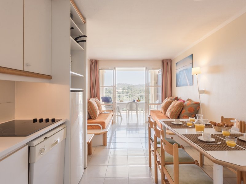 - Eco-Standard Apartment — 1/2 bedroom apartment for 6/7 people — Sea view — расположенные в зоне Esquinade апартаменты площадью 37-42 кв.м с 1/2 спальней для 6-7 человек, с видом на море. 1 спальня с одной двуспальной кроватью; 1 спальный альков с двухъярусной кроватью; 1 гостиная с двумя раскладными диванами, одна из которых включает выдвижную кровать (рекомендуется для детей); полностью оборудованная кухня открытого плана; 1 ванная комната с ванной или душевой кабиной; 1 туалет.