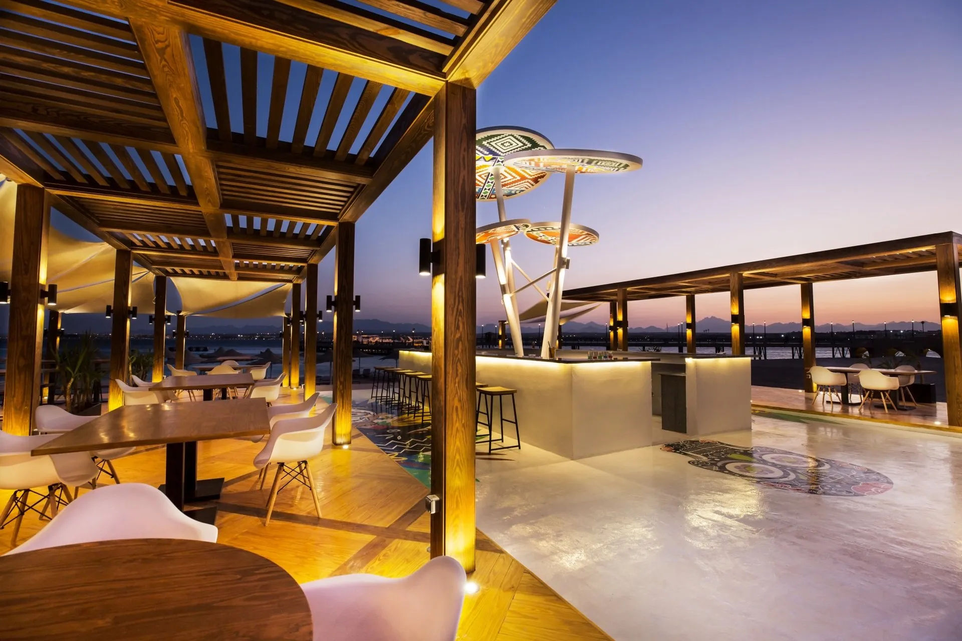 Beach Bar — расположенный на частном пляже бар, предлагающий легкие закуски, аппетитные низкокалорийные пиццы для здорового образа жизни и различные напитки. Для особых диетических потребностей предлагается также безглютеновая пицца.
