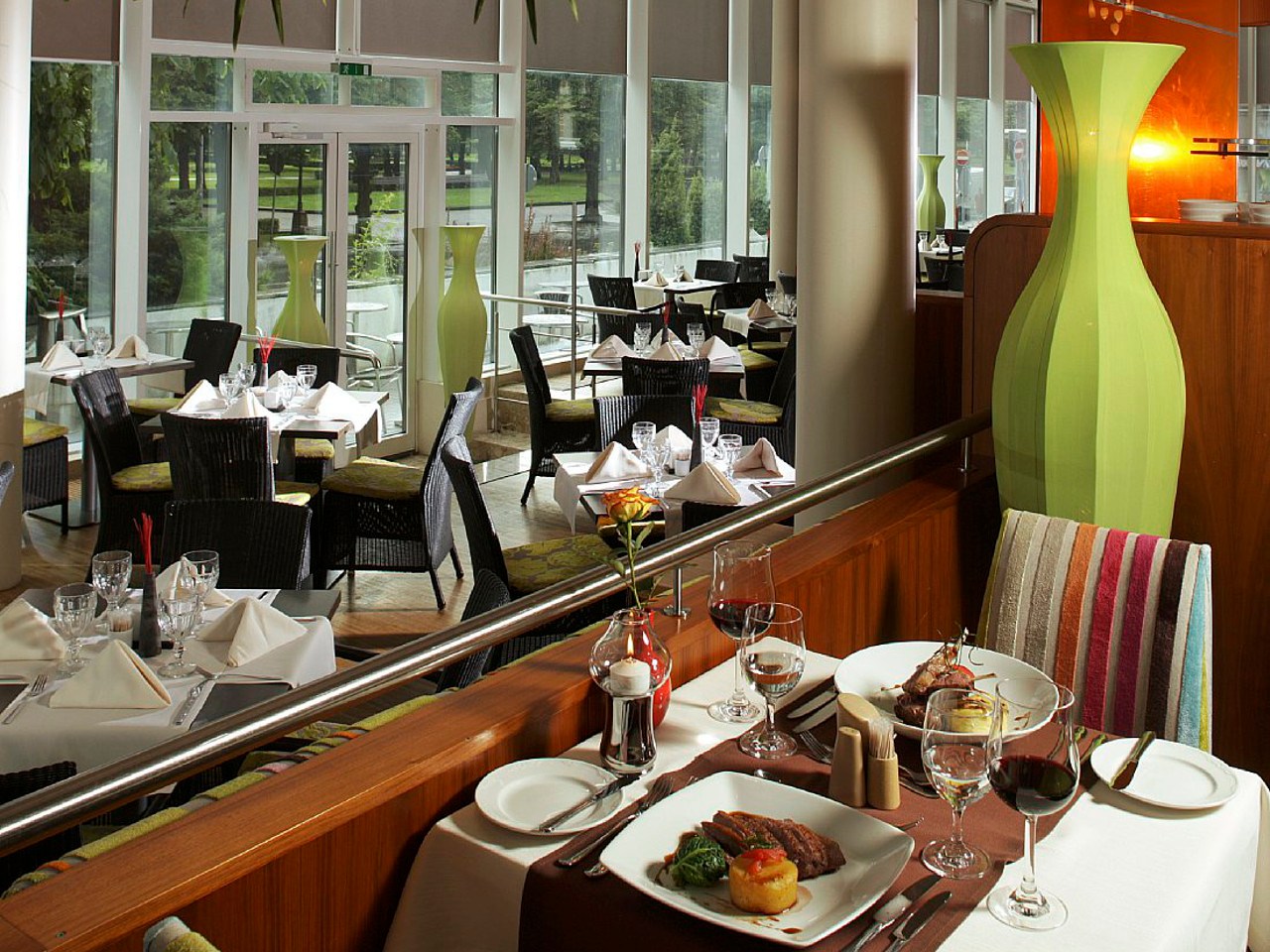 В ресторане Esplanade Вас ждет шведский стол на завтрак, а также блюда из à la carte меню на обед и ужин. Зал ресторана выполнен в виде атриума и создает ощущение легкости. Во время трапезы гости могут насладиться живописными видами на парк с одноименным названием. Завершите вкусную трапезу фирменным десертом: шоколадным цилиндром с муссом из замороженного белого шоколада и пропитанными ромом ягодами.