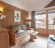 - Studio Standard 3/4 people — ориентированные на северо-запад студийные апартаменты для 3-4 гостей. Апартаменты площадью около 33 кв.м. 1 гостиная с раскладной софой для двоих, 1 спальный альков с двумя односпальными кроватями, кухонная зона открытой планировки, 1 ванная комната и 1 туалет.