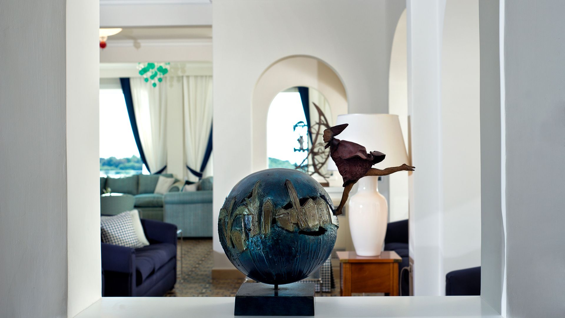- Exclusive Sea View Blue Charme Suite — это целый мир с майоликой в стиле Vietri в средиземноморских тонах и сказочным пейзажным бассейном. Войдя в этот люкс, вы погрузитесь в сине-белый мир, мир неба и воды. Двухэтажный люкс площадью 40 кв.м состоит из спальни с одной двуспальной кроватью и со своей душевой комнатой, отдельной гостиной комнаты, ванной комнаты. Дополнительно в люксе есть второй телевизор, кофемашина Espresso, аудиосистема Bose, набор индивидуальных туалетных принадлежностей. Возможна дополнительная кровать в гостиной.
