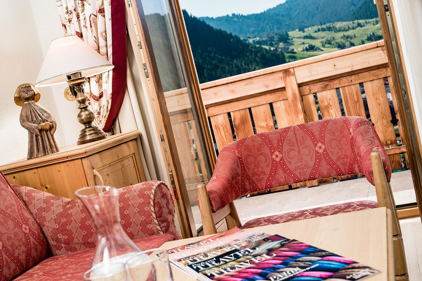 - Comfort Room — большие комфортабельные двухместные номера площадью 25-30 кв.м, состоящие из спальни, уютно обставленной гостиной зоны, ванной комнаты с ванной или душевой кабиной и туалетом, балкона с увлекательным видом на Доломиты.