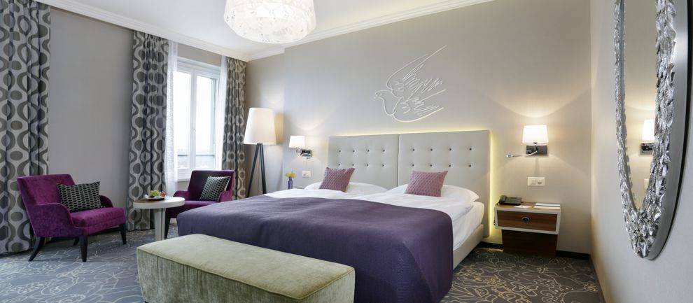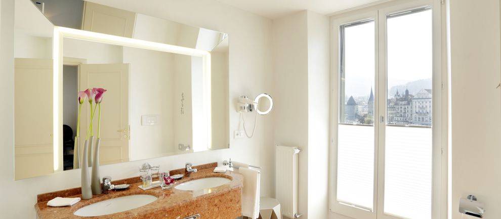 Superior double room with views of Lake Lucerne - новые улучшенные двухместные номерс с видом на на озеро Люцерн и, площадью около 30-35 кв.м с видом на исторический Старый город, состоящий из спальни с кроватью Queen, гостиной и рабочей зоны, ванной комнаты. - Junior Suite - 15 новых полулюксов (некоторые в угловых частях отеля) с видом на озеро Люцерн и горные пейзажи площадью около 45 кв.м, состоящие из спальни, просторной гостиной и рабочей зоны, ванной комнаты. Некоторые полулюксы располагают также балконом.