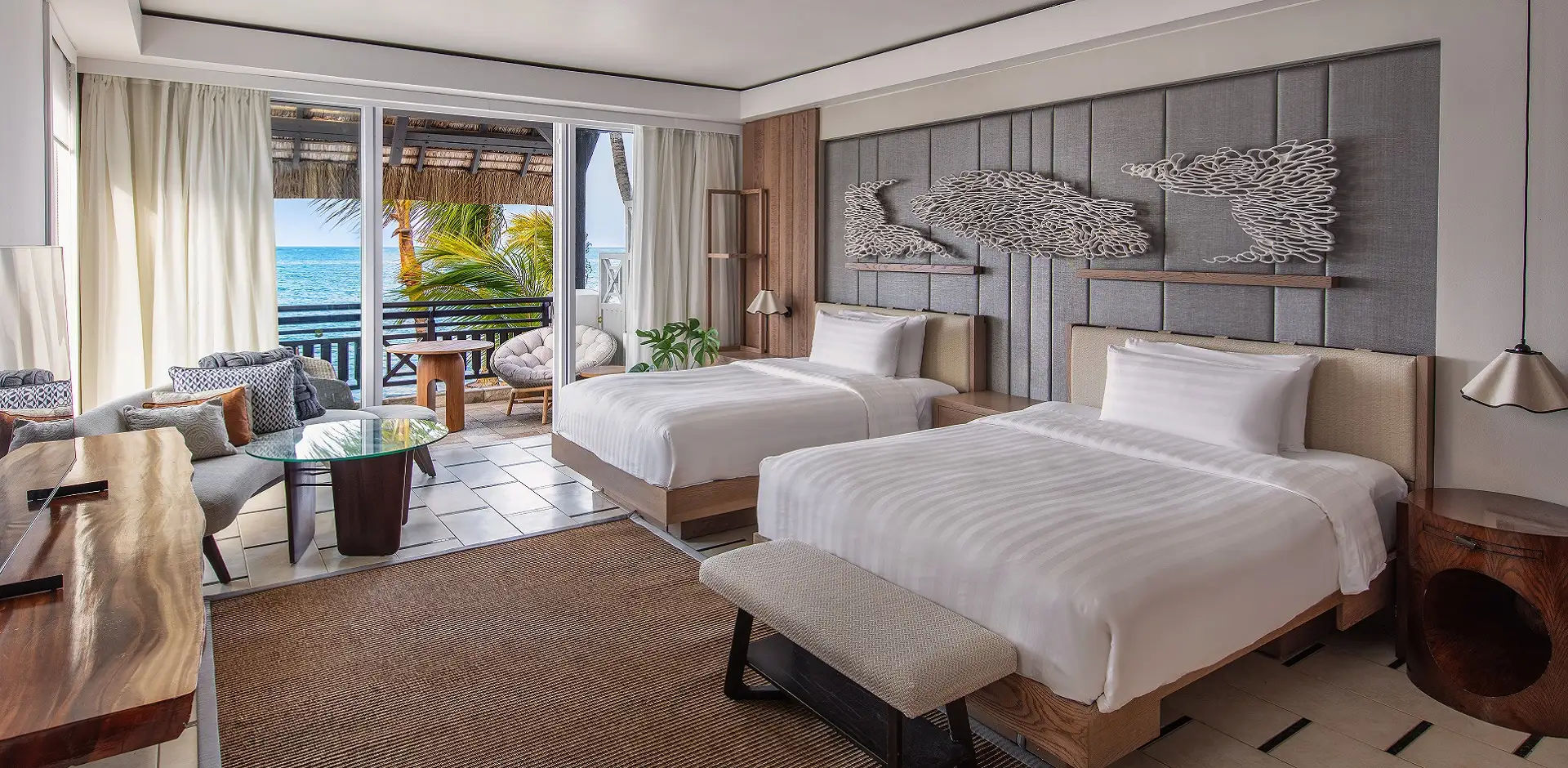 Шикарные люксы украшены скульптурными предметами и аксессуарами, вдохновленными традиционными маврикийскими техниками ткачества и отражают яркую культуру и природную красоту острова.