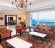 Рассчитан для максимум 4 гостей; возможна 1 раскладная кровать или 1 детская кроватка. - Royal Suite Club Lounge access, 1 Bedroom Suite, 1 King, Sea View — роскошный королевский люкс площадью 318 кв.м, с прекрасным видом на море, состоящий из спальни с одной кроватью King с пуховым одеялом, отдельной гостиной с диваном и креслами, столовой зоны с обеденным столом на 4 персоны, рабочего кабинета с письменным столом, конференц-комнаты, гардеробной, 2 отделанных мрамором ванных комнат с совмещенной ванной и душем и биде, просторного открытого балкона, террасы. Дополнительно в люксах есть второй телевизор; предлагается услуга вечерней подготовки номера ко сну.
