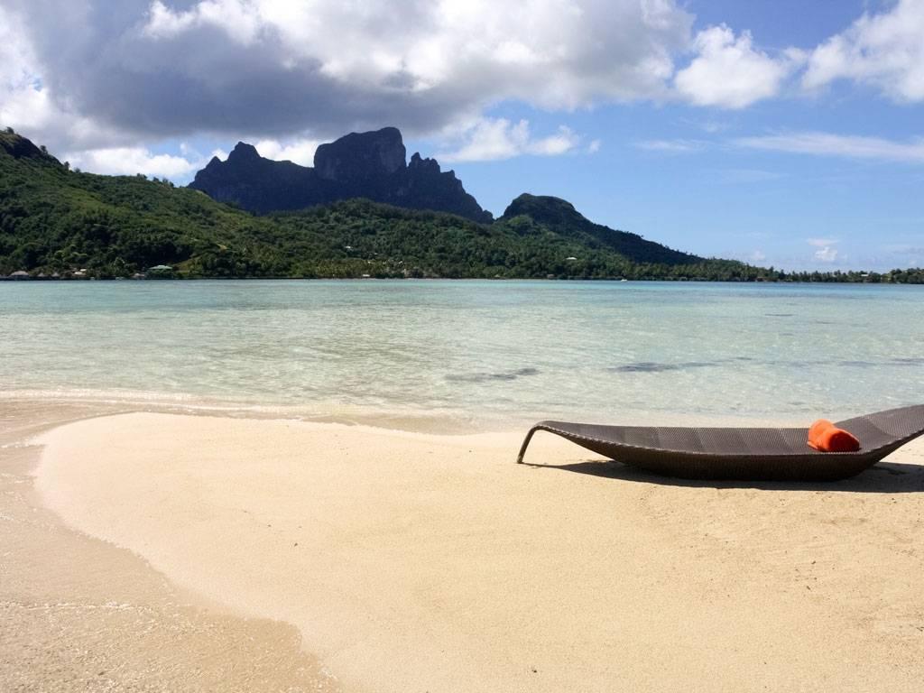 На островном курорте открывается бескрайняя круговая панорама на океан, остров Бора-Бора и гору Отеману.