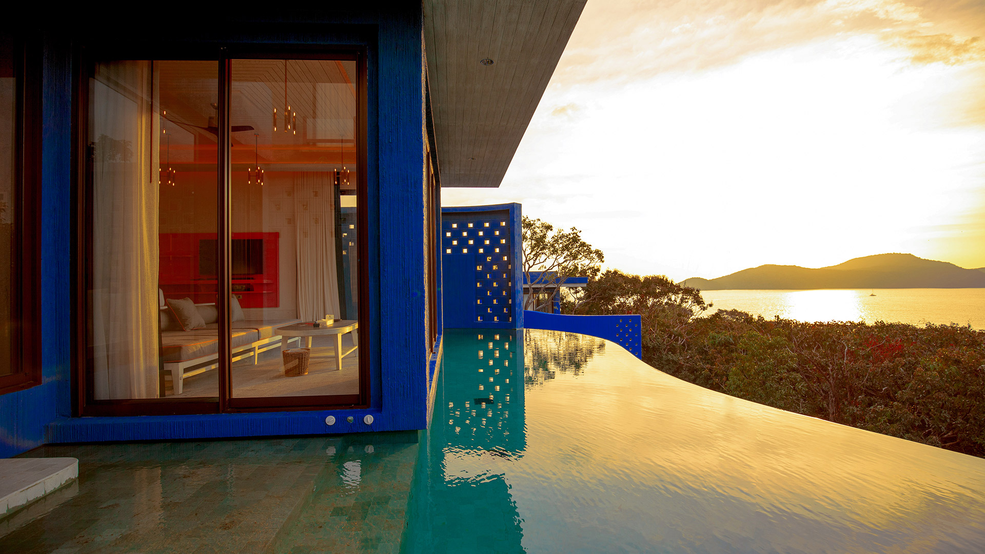 Еще два захватывающих элемента этой виллы — ее цвет и дизайн. Вилла окрашена в синий цвет, чтобы сочетаться с панорамным видом на океан, интерьер выполнен в теплом белом цвете с мебелью бирюзового и фуксиевого цветов, чтобы добавить немного блеска вашему пребыванию. Вилла-резиденция состоит из 4 отдельных частных вилл площадью 140-150 кв.м с приватным пейзажным частным бассейном, расположенным вдоль ландшафта виллы, некоторые могут иметь дерево в центре бассейна, а также прекрасно обставленную гостиную, предоставляющую все необходимое пространство для стильного отдыха. Потягивайте свежесваренный кофе Nespresso, наслаждаясь успокаивающим видом на Андаманское море, или побалуйте себя долгим отдыхом в своей роскошной ванной комнате. На вилле и у общего бассейна установлена звуковая система Bose. Кроме того, для вашего удобства обустроены современный бар и просторная солнечная терраса с зоной для отдыха на свежем воздухе. Остановившись в одной из этих вилл, вы можете наслаждаться восходом или закатом солнца с панорамным видом на Андаманское море прямо со своей кровати, чего вы не найдете больше нигде на Пхукете.