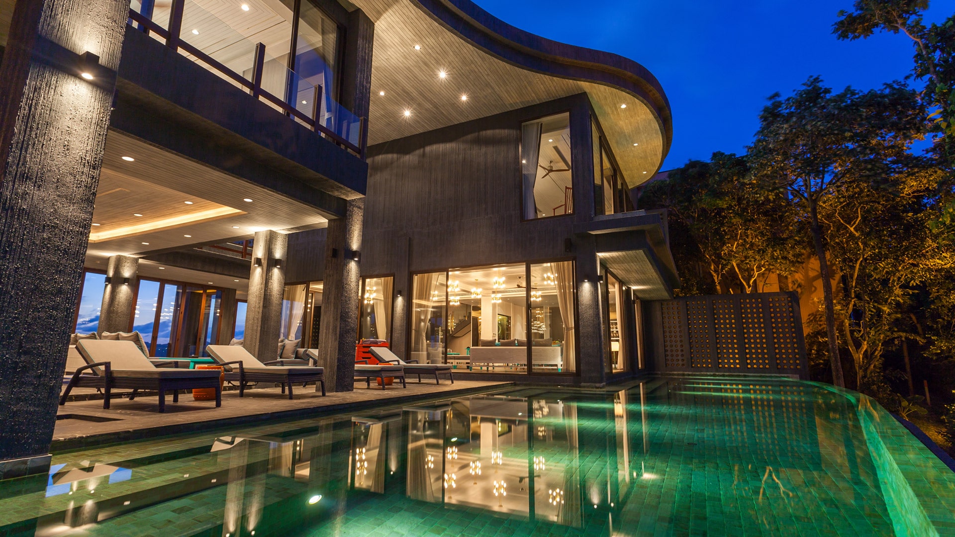 Гости могут насладиться романтическим вечером, отдыхая в открытой беседке или на большом раскладном диване, где современная развлекательная система и специально подобранные плейлисты задают настроение. Вилла площадью около 900 кв.м, не имеющая соседей ни в поле зрения, ни в слышимости, предлагает абсолютную конфиденциальность и представляет собой роскошную жизнь в ее лучшем проявлении. - 4 Bedroom Luxury Residential Pool Villa — расположенная на мысе Панва и гарантирующая вам лучший вид на Андаманское море и панорамный вид на океан вилла площадью 1275 кв.м, с просторной зоной отдыха, идеально подходящая для пар, семейных встреч или даже частных вечеринок, с огромным бассейном с современной водной стеной и, что самое главное, баром для любителей вечеринок.