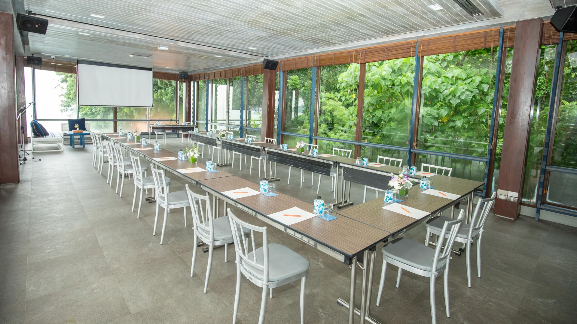 Структура состоит из двух конференц-залов вместимостью 400 человек и дополнительных 24 люксов с бассейном, все оформлено в фирменном стиле роскоши Sri Panwa с современными тропическими интерьерами и терракотовыми экстерьерами. Светлое и воздушное здание кремово-голубого цвета прекрасно вписывается в окружающую среду с 360-градусными видами на Андаманское море.