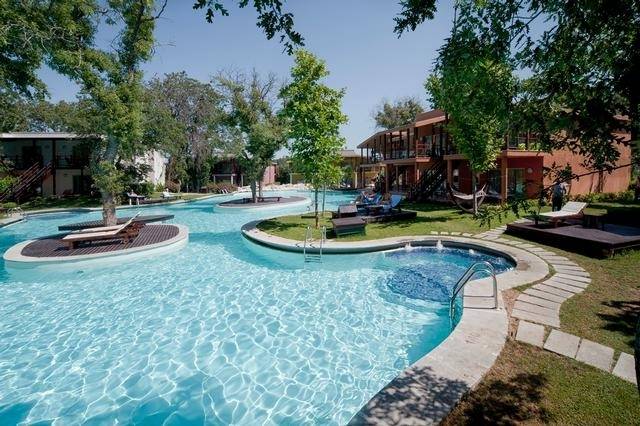 В отеле есть крытый бассейн площадью 225 кв.м, огромный открытый плавательный бассейн площадью 2000 кв.м, один из самых больших бассейнов для детей в 30 кв.м, бассейн аквапарка 500 кв.м с 7 горками, детский бассейн с горкой на 100 кв.м и бассейн с естественным природным ландшафтом в окружении Домиков у озера, имеющий площадь 2800 кв.м.