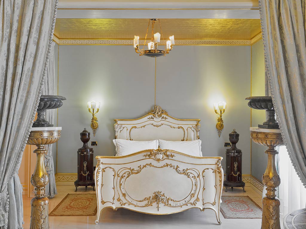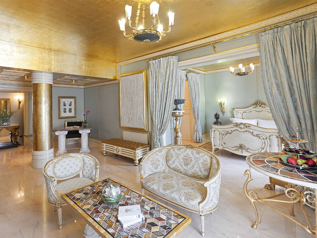 - Suite Garibaldi — престижный люкс площадью 80 кв.м, с мебелью в имперском стиле и современными удобствами, с розовым мраморным полом, антикварными статуями и картинами, ценными гобеленами, венецианской лепниной и потолками из сусального золота, состоящий из спальни с одной двуспальной кроватью, отдельной гостиной комнаты, отделанной мрамором ванной комнаты с душем и джакузи, террасы с балконом с видом на внутренний дворик.