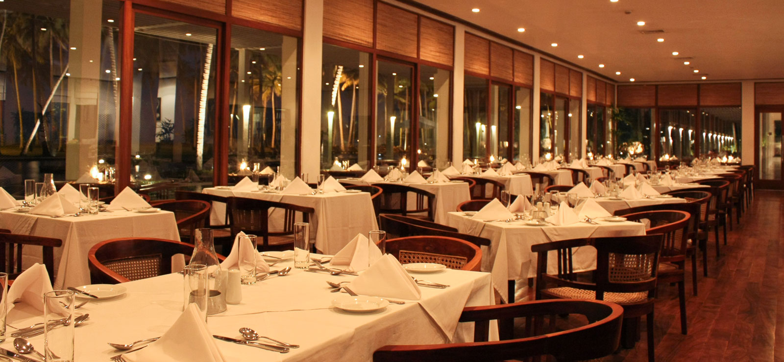 The Blue Water Hotel and Spa приглашает побаловать себя превосходными кулинарными творениями от шеф-повара и предлагает вам широкий выбор блюд местной шри-ланкийской и интернациональной кухни. Поужинайте у бассейна по вечерам, а свет, отражающийся в воде бассейнов и прудов, создаст впечатляющую и романтическую обстановку для вас и ваших близких. Посетите круглосуточную кофейню Seven Seas, уникальные рестораны Admiral’s Room или The Nautilus, которые предлагают восхитительные блюда в окружении потрясающей архитектуры. Ночью большие ухоженные тропические сады становятся местом для барбекю под звездами. А персонал с радостью выполнит вашу просьбу и предоставит вам уникальный и эксклюзивный ужин.