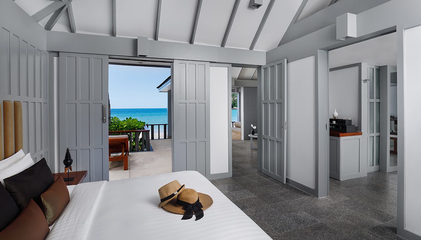 Днем обширная зона бассейна и лаунж-зал приглашают вас максимально насладиться островным образом жизни курорта на открытом воздухе, не покидая свою виллу, а ночью успокаивающее внутреннее пространство становится местом для уединения. - Beach Deluxe Suites — 9 расположенных вдоль кромки белого песчаного пляжа под покачивающимися кокосовыми пальмами, всего в нескольких шагах от бирюзового Андаманского моря пляжных люксов площадью 90 кв.м, состоящих из спальни с кроватью Super King-size, отдельной гостиной комнаты с раскладным диваном, которая при необходимости трансформируется в дополнительную кровать для двух детей, просторной гардеробной, роскошной ванной комнаты с ванной, просторной веранды с крытой зоной отдыха, палубы для загара и террасы, чтобы любоваться окружающей красотой.