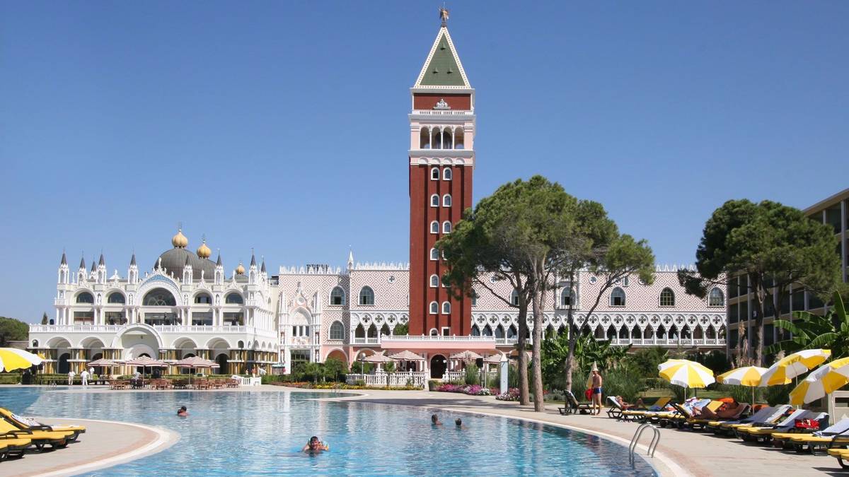 Venezia Palace Deluxe Resort Hotel — великолепный 5-звездочный отель, расположенный на берегу Средиземного моря. Отель отражает неповторимую красоту Венеции — города каналов и дворцов, площадь San Marco, церковь Basilica, дворец Dukler, башня Campanile, кафе Florian, мост Rialto. Работает по системе Ultra Deluxe ALL INCLUSIVE.