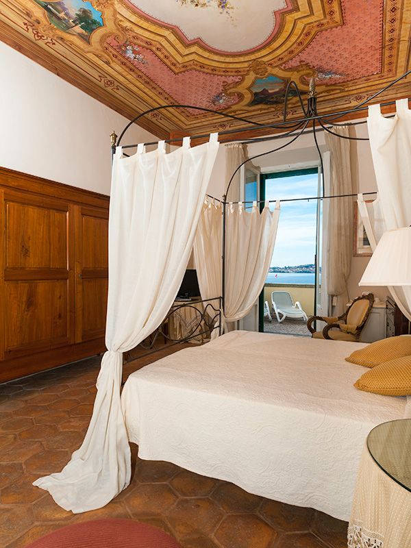 - Contessa Room — уютный номер, состоящий из спальни, уютно обставленной гостиной зоны, ванной комнаты с ванной и душвой кабиной с гидромассажем Teuco, большой меблированной террасы с видом на море. Красота этого номера вобрана в потолке с фресками. Деликатность розового цвета и элегантность слоновой кости связывают серию медальонов пейзажных сцен в единый сделанный со вкусом узор с цветочными штрихами. Антикварные принты и старинная мебель подчеркивают его утонченность.